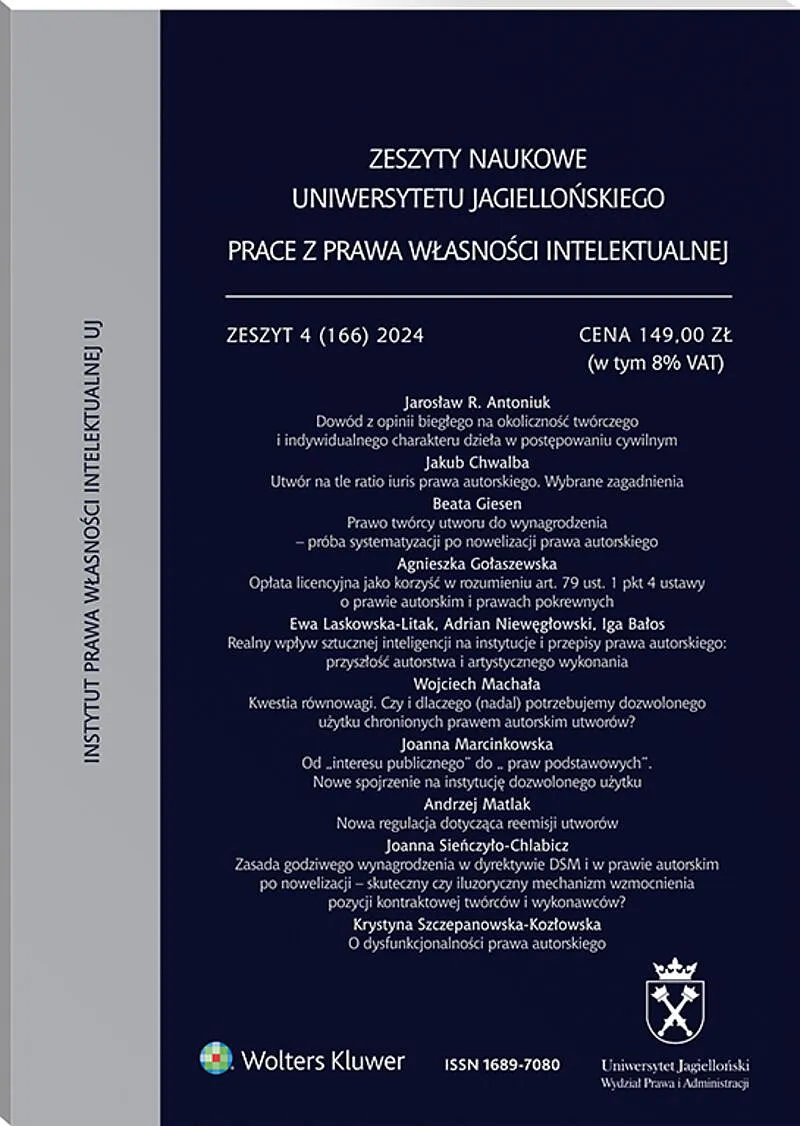 w: Zeszyty Naukowe Uniwersytetu Jagiellońskiego "Prace z prawa własności intelektualnej" 2023, nr 2, s. 62-72.